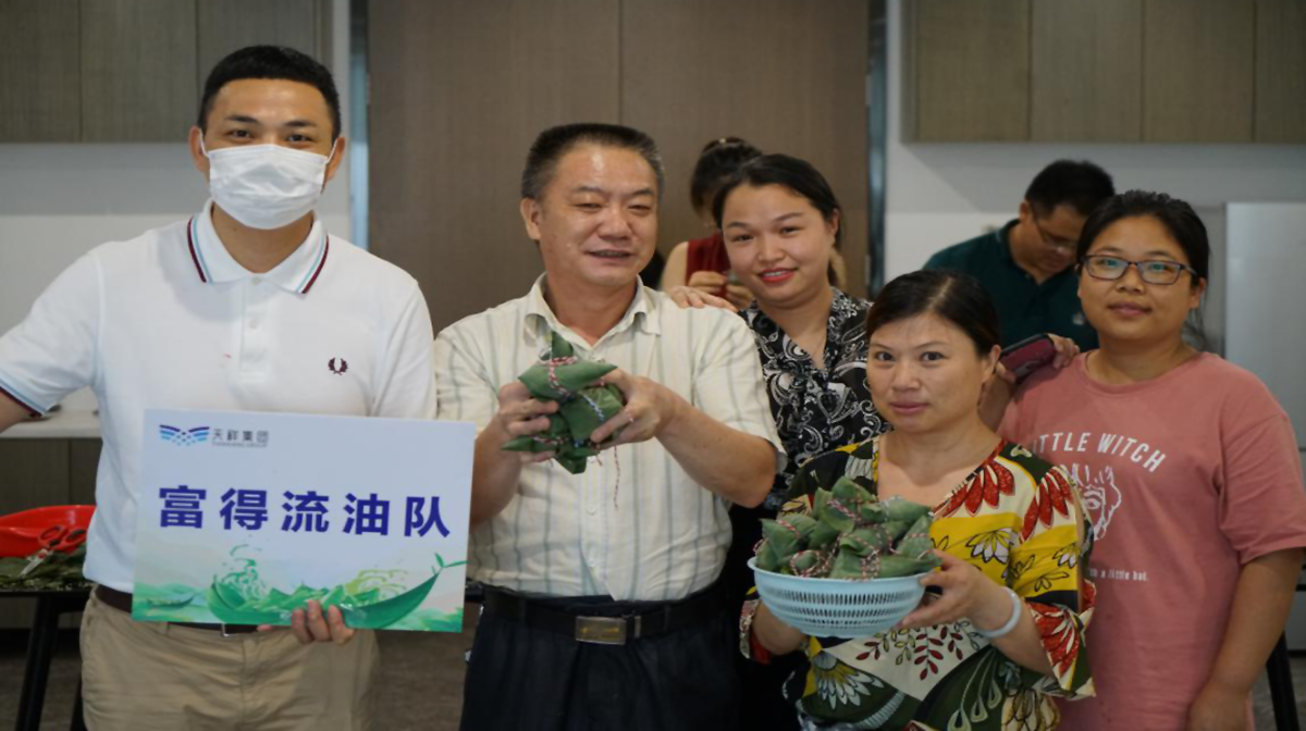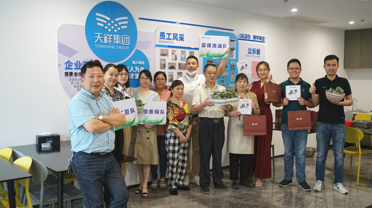 經(jīng)過1個小時的角逐,最后“富得流油隊”獲得了本次活動的第一名。比賽結(jié)束后,同事們紛紛帶著自己的勞動果實留念合影,并懷著激動、期待的心情等待新鮮出鍋的“天祥牌”香粽。