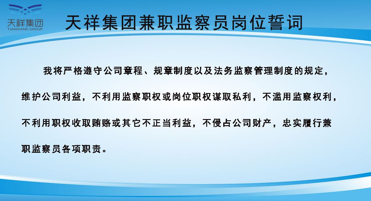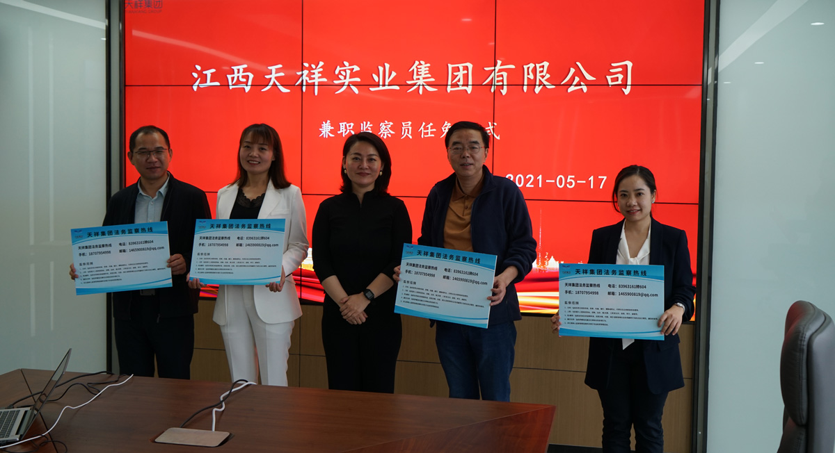 天祥集團(tuán)歷經(jīng)近三十年的發(fā)展,已成為一家集重資產(chǎn)板塊、輕資產(chǎn)板塊、風(fēng)投合作板塊于一體的多元化產(chǎn)業(yè)投資集團(tuán)。為進(jìn)一步規(guī)范集團(tuán)各部門、子公司的管理工作,保障公司各項決策有效落實,盡可能避免因工作失誤或其它原因?qū)е碌娘L(fēng)險和損失,集團(tuán)2021年4月6日下發(fā)《法務(wù)監(jiān)察管理制度》,并于5月17日下午在集團(tuán)總部對各兼職監(jiān)察員進(jìn)行聘用、崗位宣誓儀式。