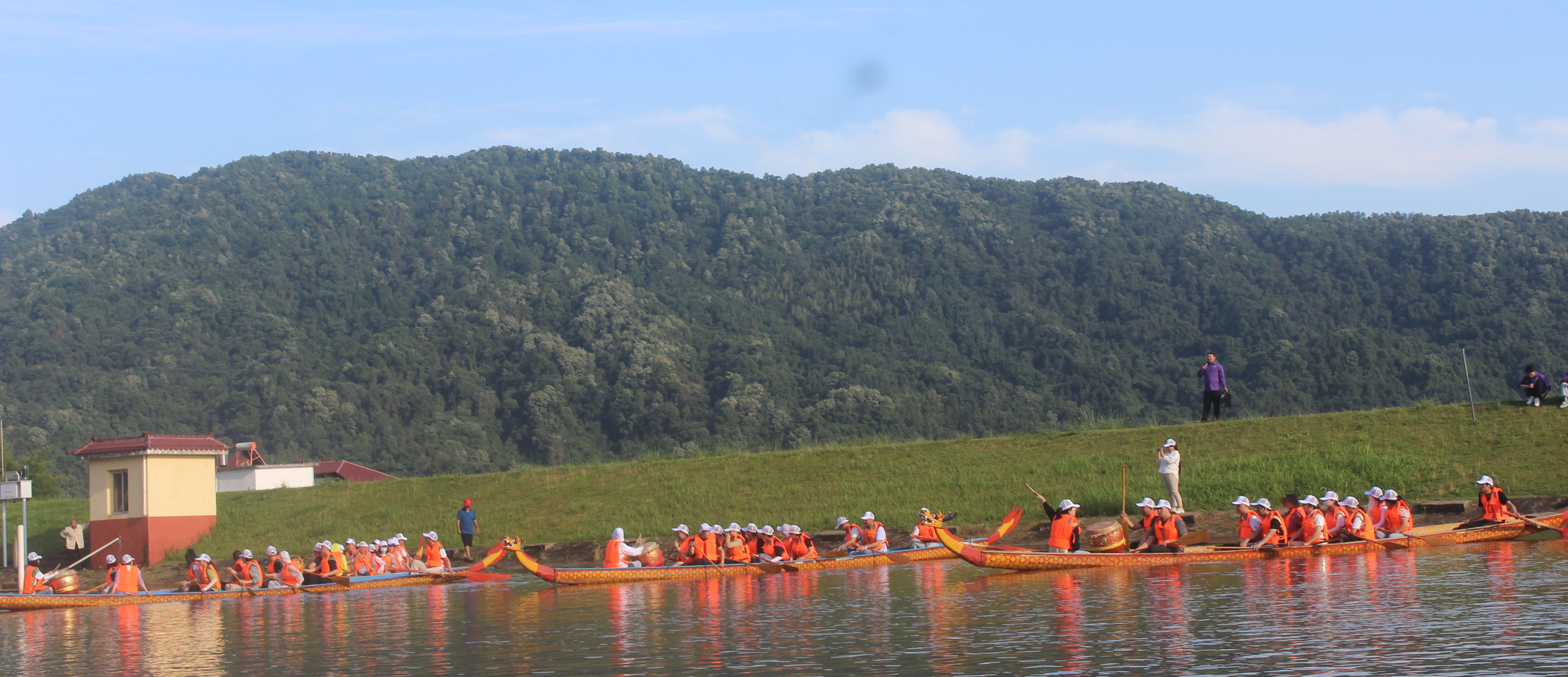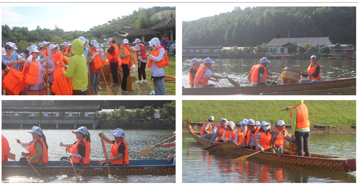 6月14日是傳統(tǒng)佳節(jié)——端午節(jié),為體驗節(jié)日氣氛,本次拓展還組織了劃龍舟、賽龍舟競技活動。在教官的指導下,四支隊伍迅速做好內部分工選出鼓手、舵手及劃手。大家穿好救生衣,拿起手中的漿,有序的登上龍舟。各隊隊員通過不到一小時的實踐及學習,迅速掌握掌舵、劃槳、打鼓等技能,并順利完成比賽。很多隊員表示:一直以為劃龍舟是一件很困難的事,但沒想到通過自己的摸索與學習,也能劃得像模像樣并順利完成比賽,真的太有意思啦!