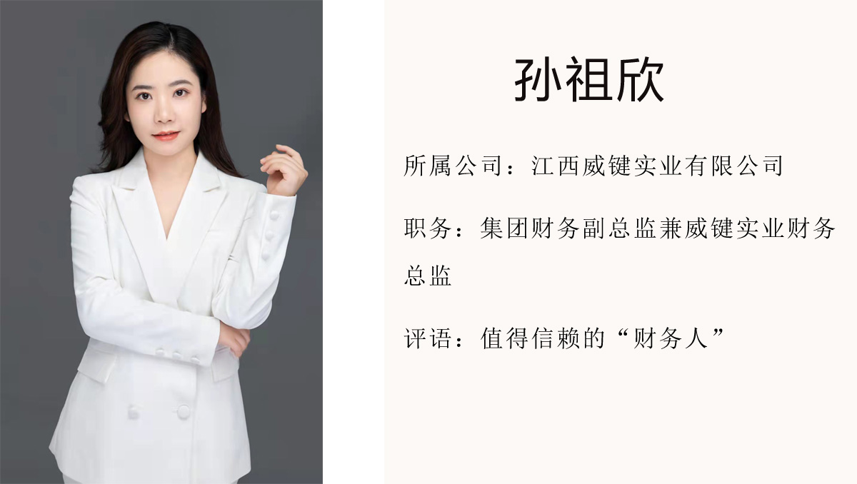 孫祖欣,2016年12月20日入職天祥集團(tuán)旗下重資產(chǎn)板塊中的房地產(chǎn)產(chǎn)業(yè)——江西威鍵實(shí)業(yè)有限公司擔(dān)任財(cái)務(wù)副總監(jiān),現(xiàn)任集團(tuán)財(cái)務(wù)副總監(jiān)兼威鍵實(shí)業(yè)財(cái)務(wù)總監(jiān)一職,負(fù)責(zé)威鍵實(shí)業(yè)桃花源筑項(xiàng)目財(cái)務(wù)管理工作及集團(tuán)財(cái)務(wù)審計(jì)工作。在為公司服務(wù)的5年時間里,孫祖欣盡職盡責(zé),勇于承擔(dān),不斷自我學(xué)習(xí),在參與公司重大事項(xiàng)談判、簽約時,積極參與審議并提出財(cái)務(wù)專業(yè)意見,為公司爭取最大權(quán)益。2020年獨(dú)立管理威鍵實(shí)業(yè)財(cái)務(wù)工作后,積極與第三方擔(dān)保公司溝通盤活政府監(jiān)管資金加速公司資金流動。孫祖欣持續(xù)認(rèn)真負(fù)責(zé)的工作態(tài)度無時不在詮釋一個財(cái)務(wù)人員的職責(zé)與擔(dān)當(dāng),是集團(tuán)值得依賴的“財(cái)務(wù)人”。