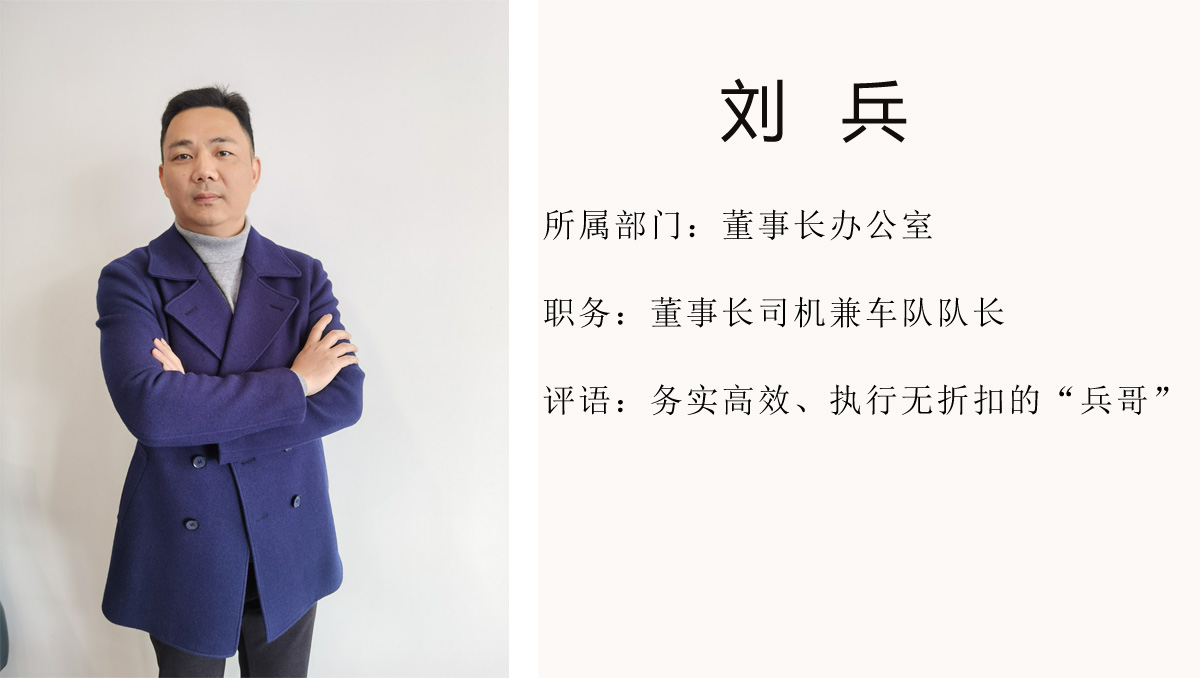 劉兵,2017年10月1號入職天祥集團(tuán)擔(dān)任董事長司機(jī)兼車隊隊長一職,負(fù)責(zé)董事長用車、車隊管理工作。在為公司服務(wù)的四年多時間里,他每天都是兢兢業(yè)業(yè),勤勤懇懇對待每一件工作。在擔(dān)任車隊隊長的崗位上,他積極主動的完善了車輛管理制度,為公司二十余輛汽車的維修、保養(yǎng)、保險、事故處理等做了系統(tǒng)化流程管理優(yōu)化,保障了公司的用車安全。他盡忠職守,以公司為家,不僅很好的完成了本職工作,還承擔(dān)起了公司許多重要接待工作,在公司同事們愛稱呼他為“兵哥”。
