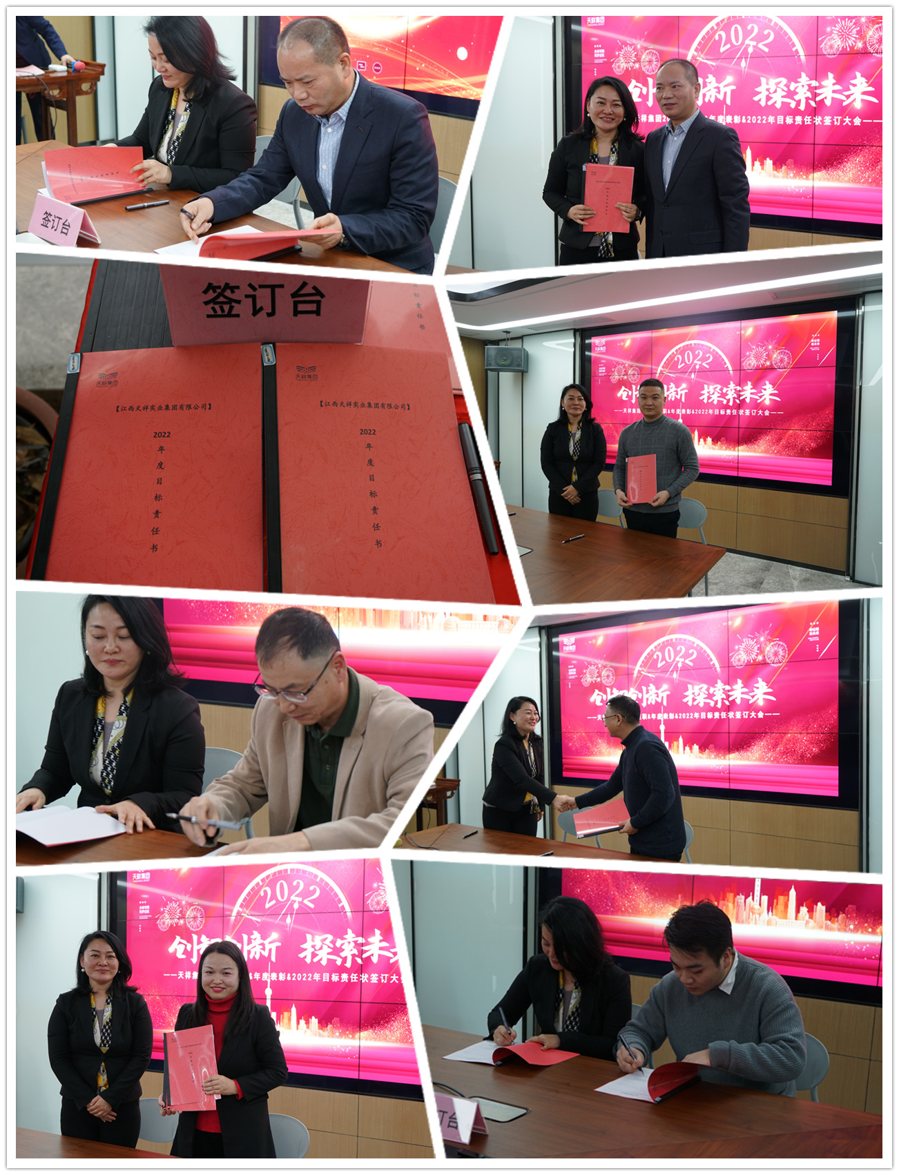 會(huì)上,總裁李璐代表集團(tuán)整個(gè)經(jīng)營(yíng)管理團(tuán)隊(duì)與集團(tuán)董事長(zhǎng)簽訂2022年集團(tuán)整體運(yùn)營(yíng)目標(biāo)責(zé)任書;各分子公司、各職能中心負(fù)責(zé)人分別與集團(tuán)總裁李璐簽訂2022年分子公司、職能中心目標(biāo)責(zé)任書。目標(biāo)責(zé)任書不僅僅是目標(biāo)和責(zé)任的承擔(dān),更是信心、勇氣和力量的傳遞。相信有了各單位、各部門全體同仁的團(tuán)結(jié)與努力,我們天祥集團(tuán)2022年的各項(xiàng)指標(biāo)一定能夠圓滿完成!