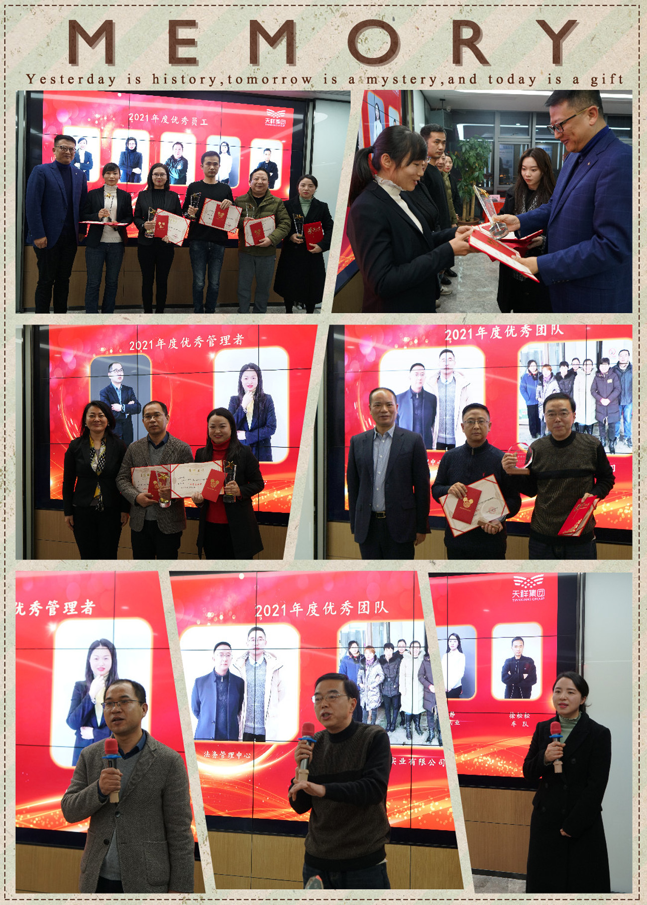 企業(yè)的發(fā)展離不開各子公司、集團(tuán)全員的共同努力,在過去的一年里,天祥涌現(xiàn)出了一大批愛崗敬業(yè)、貢獻(xiàn)突出的先進(jìn)團(tuán)體和先進(jìn)個(gè)人,他們勇于擔(dān)當(dāng)、銳意創(chuàng)新、無私奉獻(xiàn),生動(dòng)詮釋了“責(zé)任”二字的深刻含義,有效發(fā)揮了典型模范的引領(lǐng)示范作用。會(huì)上,主持人宣讀了表彰決定,公司領(lǐng)導(dǎo)為2021年度優(yōu)秀個(gè)人及團(tuán)隊(duì)進(jìn)行了現(xiàn)場(chǎng)表彰,威鍵實(shí)業(yè)財(cái)務(wù)高級(jí)主管張靜、集團(tuán)投資發(fā)展中心副總監(jiān)萬明、眾勤實(shí)業(yè)總經(jīng)理吳英龍分別代表優(yōu)秀員工、優(yōu)秀管理者、優(yōu)秀團(tuán)隊(duì)分享了感悟和收獲。