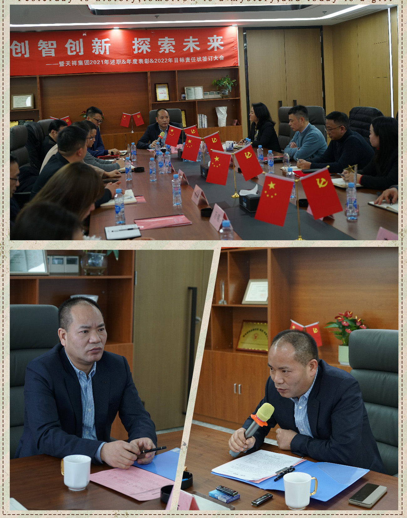 歲月不居,時(shí)節(jié)如流,告別了極不平凡的2021年,我們迎來了全新的2022年。1月24日,天祥集團(tuán)2021年度述職、年度表彰暨2022年度目標(biāo)責(zé)任狀簽訂會(huì)在集團(tuán)總部召開。在董事長(zhǎng)孫光福先生的帶領(lǐng)下,各子公司、各職能中心負(fù)責(zé)人及年度優(yōu)秀個(gè)人、優(yōu)秀團(tuán)隊(duì)代表參與了本次會(huì)議。