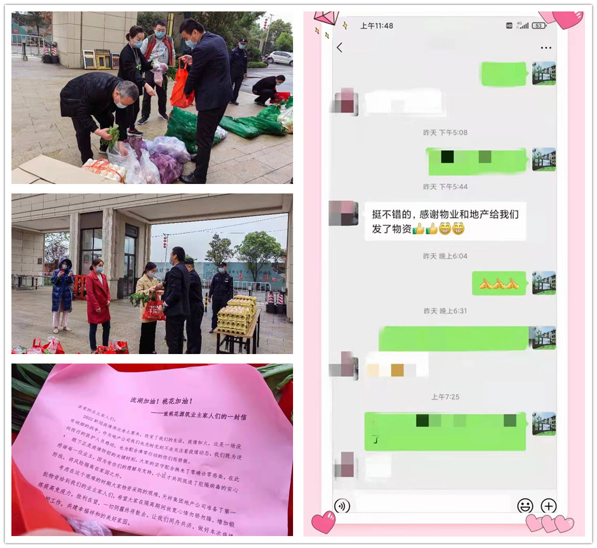 在新建區(qū)確診一例新冠病毒感染者、全區(qū)戒嚴后,區(qū)域內(nèi)的各大小區(qū)都實行封閉式管理。了解到集團地產(chǎn)桃花源筑項目業(yè)主嚴重缺乏生活物資時,集團旗下威鍵實業(yè)立即組織“物資救援小組”,為業(yè)主們送去雞蛋、肉、蔬菜等生活物資。在防疫關(guān)鍵時刻,天祥集團把守護業(yè)主的平安,作為自己的責任和使命。我們相信,和所有業(yè)主并肩同心,一定能夠戰(zhàn)勝疫情,共迎春暖花開時。