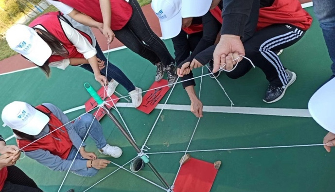 10月19日一早,天祥集團一行24人準時準點乘大巴車出發(fā),前往革命根據(jù)地井岡山。經(jīng)過5個小時的長途跋涉,安全抵達目的地。吃過午飯,經(jīng)過短暫的休息調(diào)整,拓展活動正式開始。在教官的監(jiān)督指導下,天祥人分組成“亮劍隊”、“飛翔隊”兩個隊伍,并開展了相互較量,最終順利完成群龍取水、神筆馬良、信任背摔等團隊挑戰(zhàn)項目,隊員彼此加深了解與信任,成功完成團隊破冰任務。