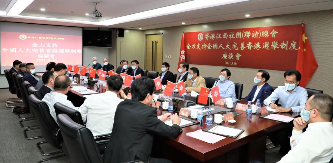 十三屆全國(guó)人大四次會(huì)議高票表決通過(guò)的《全國(guó)人民代表大會(huì)關(guān)于完善香港特別行政區(qū)選舉制度的決定》在廣大居港贛籍鄉(xiāng)親中引起熱烈反響,3月16日,香港江西社團(tuán)(聯(lián)誼)總會(huì)舉行“全力支持全國(guó)人大完善香港選舉制度”座談會(huì),總會(huì)首席創(chuàng)會(huì)主席王再興、熊建明、張華榮、鄧文云等多位創(chuàng)會(huì)主席齊聚一堂,學(xué)習(xí)研討對(duì)有關(guān)決定的認(rèn)識(shí)和影響,天祥集團(tuán)董事長(zhǎng)孫光福先生作為創(chuàng)會(huì)主席應(yīng)邀參會(huì)。
